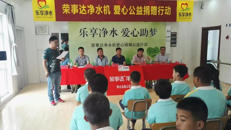 •         6月7日上午,榮事達“樂享凈水”愛心團隊走進河北省河間市,向河間特殊教育學(xué)校捐贈了多臺凈水設(shè)備。河間市教育體育局、城關(guān)教委、河間廣播電視臺等單位領(lǐng)導(dǎo)參加了捐贈儀式。