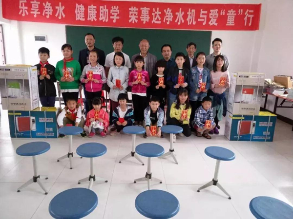 2018年6月1日,榮事達(dá)走進(jìn)紅色革命老區(qū)——金寨縣,攜手金寨希望公益服務(wù)中心及地方公益協(xié)會(huì)共同發(fā)起“給山區(qū)孩子一杯水”——援建金寨中小學(xué)凈水設(shè)備公益活動(dòng)。榮事達(dá)通過(guò)工程援建和設(shè)備捐贈(zèng)的方式,為金寨縣所有中小學(xué)援建直飲水系統(tǒng)400多套,受到學(xué)生、學(xué)校、家長(zhǎng)們的一致好評(píng)。該項(xiàng)目被全國(guó)文明辦評(píng)為“全國(guó)百佳公益項(xiàng)目”。