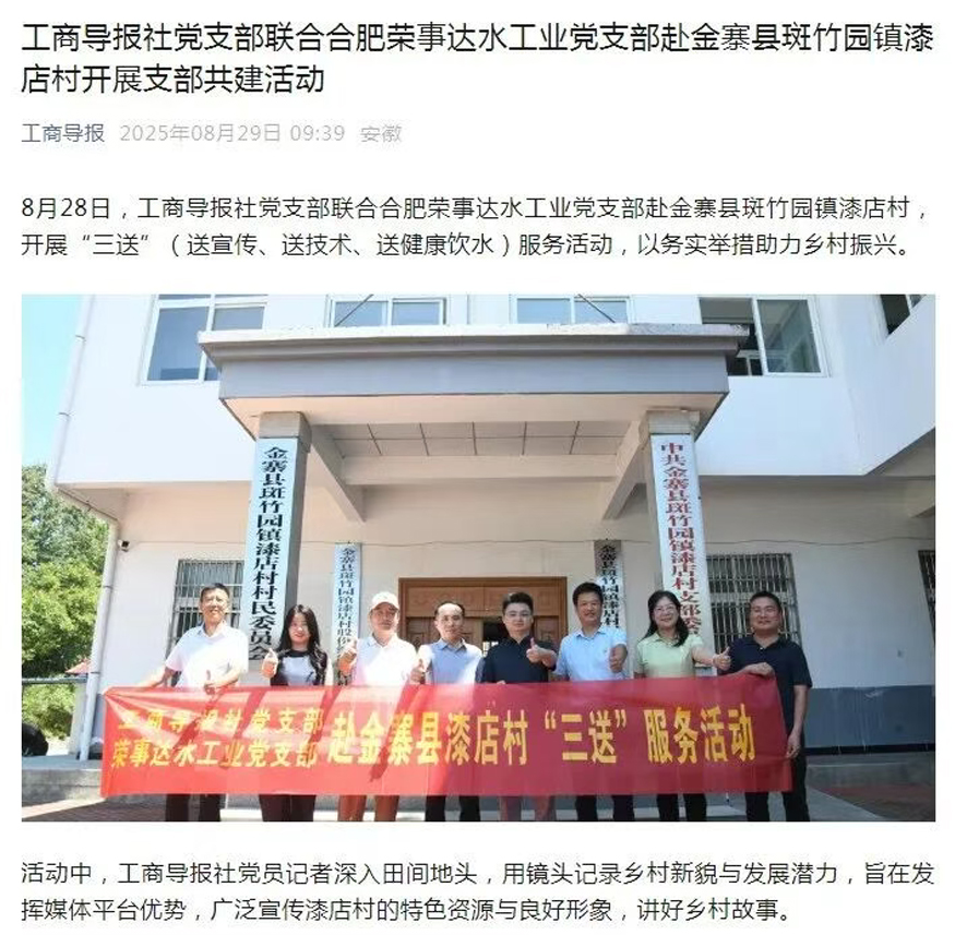工商導(dǎo)報社黨支部聯(lián)合合肥榮事達(dá)水工業(yè)黨支部赴金寨縣斑竹園鎮(zhèn)漆店村開展支部共建活動