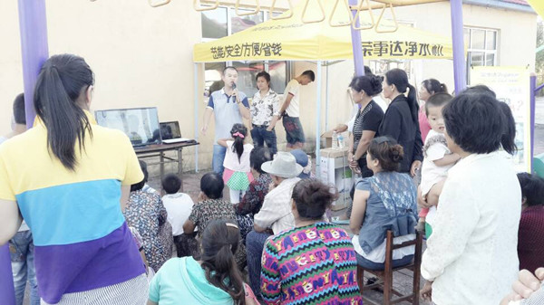 講座上,榮事達工作人員播放了央視播出的關于飲用水污染的新聞視頻,分發了單頁,讓居民更深入地了解健康飲水知識。據居民介紹,當地的水質確實大不如從前,但他們依舊正常飲用,只是逢年過節許多外出務工、求學的人回來,喝著這水腸胃不服,都去超市買礦泉水喝。在活動現場,工作人員運用科學實驗做了水質測試,用數據直觀地向居民反映了東寧縣水質狀況。