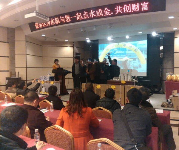 會議上,訂購場面如火如荼,十多位新客戶的加盟壯大了榮事達凈水機在襄陽地區的銷售隊伍。最后的砸金蛋抽獎環節使會議達到高潮,東風小康汽車、iPad、山地自行車等豐厚大獎再次激發了經銷商們訂貨的熱情。