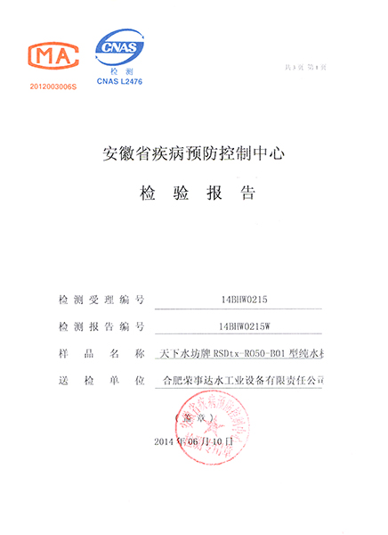 RSD-UF500超濾凈水機檢驗報告...