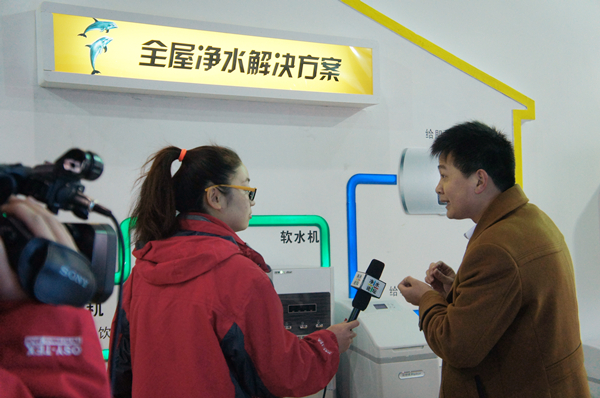 榮事達展廳內客戶或駐足觀看、或拍照咨詢、或洽談合作,人氣非凡,絡繹不絕,成為全場最熱鬧的展廳之一。其卓越的產品和超高人氣也引來了眾多媒體的關注,華北大區總監胡鋒接受了《凈水論壇》等記者的訪問,以全屋凈水方案為重點,展示了榮事達的尖端技術水平和人性化飲水方案。