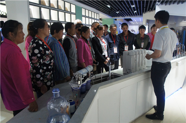 在產品展廳,接待人員給消費者解說了榮事達全線產品類別,并講解了純水機、超濾機、飲水機、一體機等產品的不同功能及適用地區。參觀中,許多鄉鎮地區消費者反映家里井水水垢水堿太嚴重、雜質多,詢問有沒有適合其使用的凈水機,接待人員向其推薦了榮事達純水機,詳細講解了純水機運用RO反滲透技術、五級過濾系統,能夠高效去除水垢、水堿、農藥、化肥、細菌、重金屬等有害物質的過濾效果。