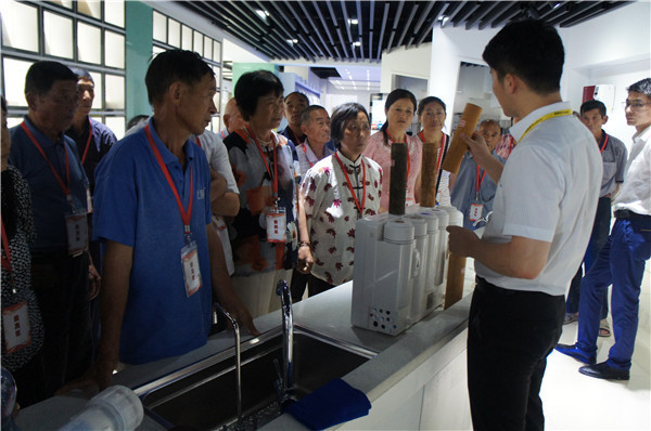 參觀中,安徽望江地區(qū)的李先生詢(xún)問(wèn)有沒(méi)有能過(guò)濾井水的產(chǎn)品,“我們家里沒(méi)通自來(lái)水,這些天連續(xù)大雨,家里井水犯渾,根本沒(méi)辦法喝。”工作人員向其推薦了專(zhuān)門(mén)為農(nóng)村地區(qū)研發(fā)的自吸式純水機(jī),產(chǎn)品能有效克服水壓不足、不穩(wěn)問(wèn)題,采用先進(jìn)的反滲透技術(shù)和五級(jí)過(guò)濾系統(tǒng),能夠高效濾除水中雜質(zhì),去除水垢、水堿、農(nóng)藥、化肥、細(xì)菌、重金屬等有害物質(zhì)。在展廳,消費(fèi)者切身感受了產(chǎn)品使用效果,在飲用機(jī)器現(xiàn)制的水之后,紛紛稱(chēng)贊產(chǎn)品功能強(qiáng)。