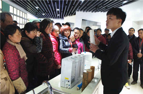 此批消費者大多來自于鄉(xiāng)鎮(zhèn)地區(qū),他們普遍反映,由于井水水垢水堿較重,味道苦咸,兒女回家過年都喝不慣。為了徹底解決家里的飲水難題,許多消費者有安裝凈水機的打算,但是如何選擇放心的品牌,卻著實不易。“能跟來看看凈水機生產(chǎn)廠家,了解到產(chǎn)品質(zhì)量和售后都有保障,心里很踏實,回去裝上家人喝水安全,用著也比去買桶裝水更方便。”巢湖的劉大爺笑著說。