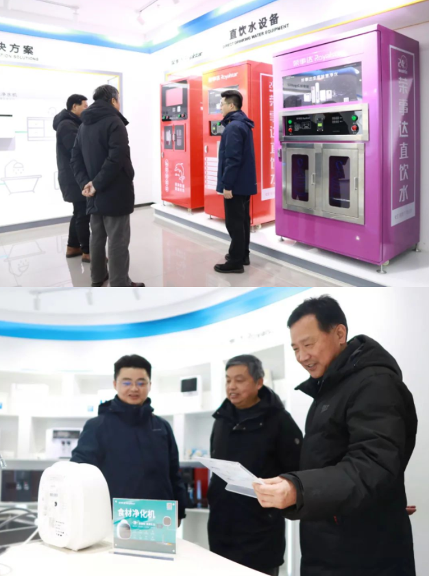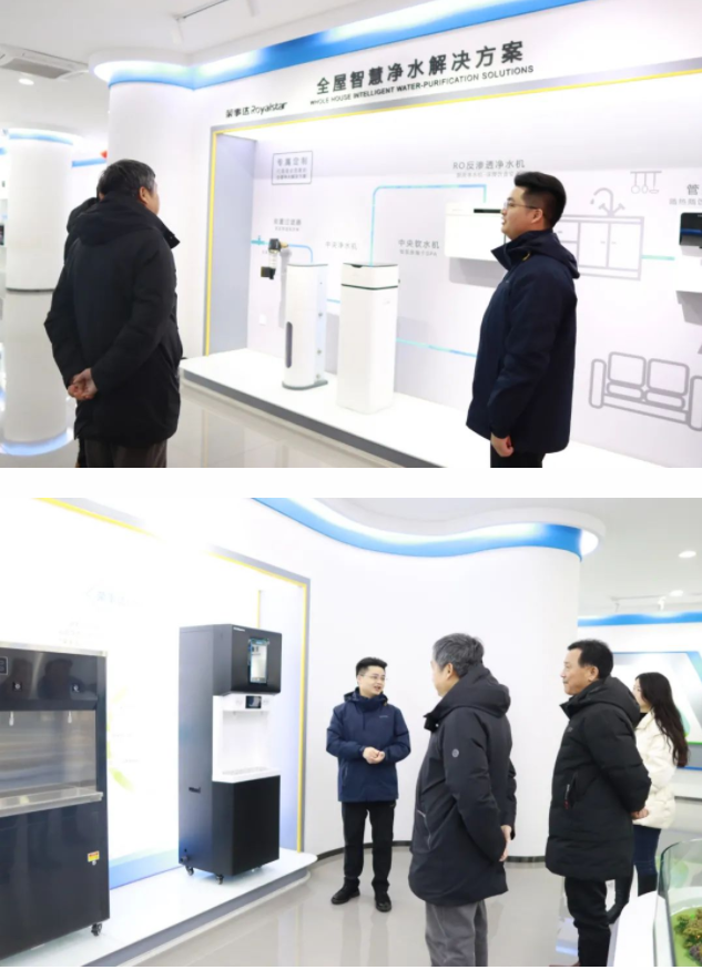 領導一行先后參觀了榮事達智能化生產車間和智慧水世界展廳,了解榮事達企業綜合實力及十大水處理系統具體發展狀況,現場體驗了企業最新研發定制產品與自主開發的物聯網校園智慧管理系統,并為榮事達行業領先的技術實力點贊。