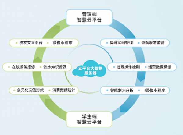 在注重產品品質的同時,榮事達水工業公司集合各系統優勢,嫁接互聯網+新模式,創新打造“校園直飲水智慧管理系統”,從管理者(運營商、校方)、學生出發,實現校園直飲水BOT項目科學化、系統化、便捷化管理及使用。