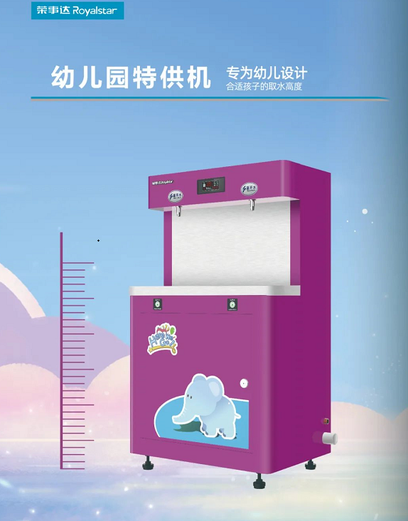 幼兒園定制機采用多級過濾系統,層層過濾,能有效去除水中的泥沙、鐵銹、重金屬、余氯等有害物質,出水可達直飲標準;出水經過濾裝置和高溫殺菌雙效處理,保障飲水健康。