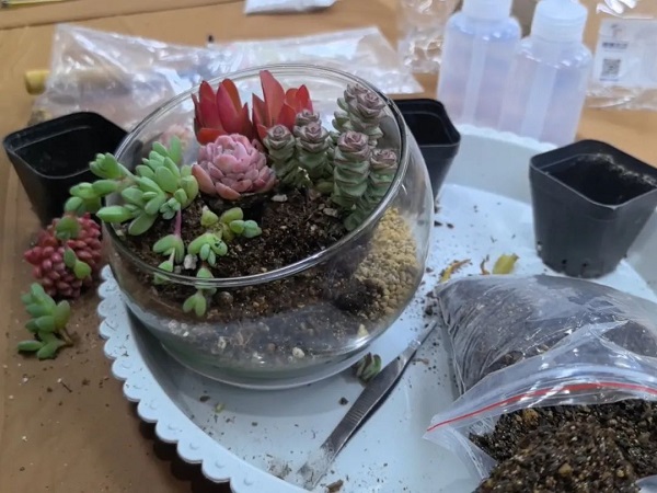 在DIY過(guò)程中,大家互相交流、分享心得,笑聲和談話聲此起彼伏。有的女神選擇了簡(jiǎn)約風(fēng)格,將多肉植物種植在小巧精致的花盆里,展現(xiàn)出一種清新脫俗的美;有的則選擇了色彩豐富的搭配,將不同顏色的多肉組合在一起,創(chuàng)造出一幅幅生動(dòng)的畫(huà)面。