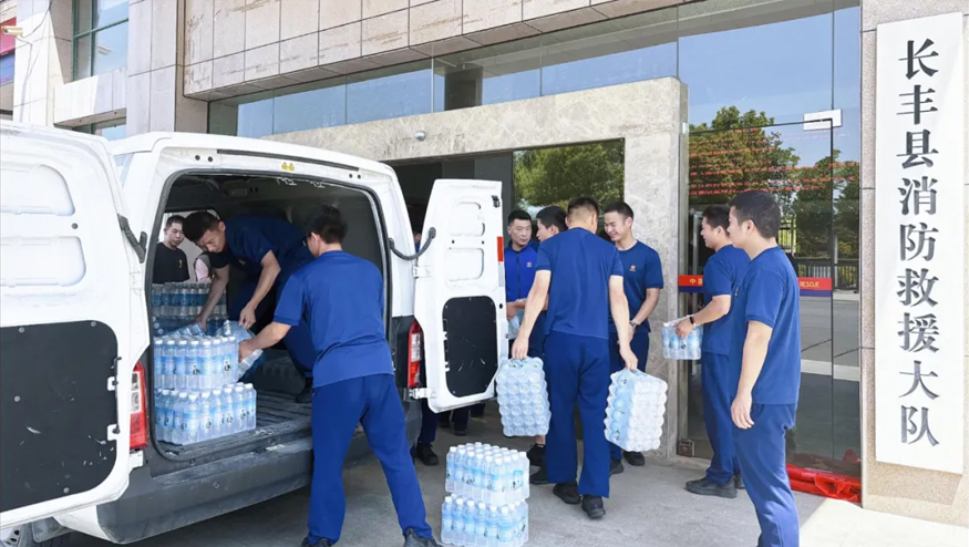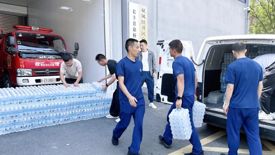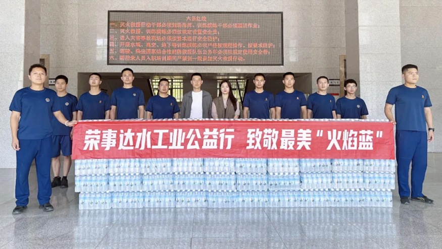 5月12日,榮事達水工業開展公益行動,集團行政總監雷鵬、黨支部書記肖曉曉來到雙鳳經開區徐橋苑消防執勤點、長豐縣消防救援大隊捐贈飲用水,致敬最美“火焰藍”,以實際行動傳遞企業的溫暖與擔當。