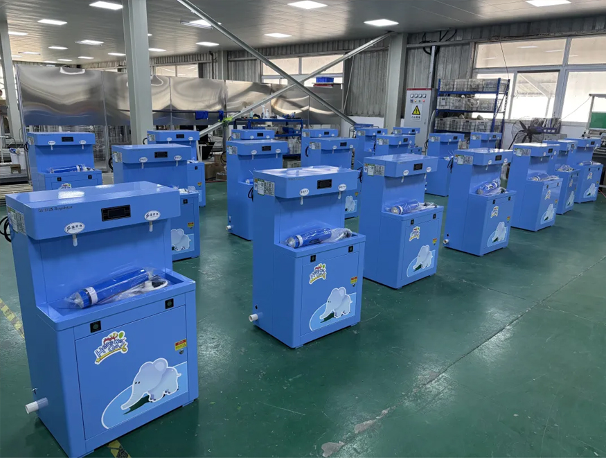 榮事達智能幼兒園直飲機專為幼兒量身打造,清新淺藍的可愛外觀與幼兒園萌趣環境完美融合,既激發幼兒飲水興趣,又便于日常使用。設備憑借反滲透過濾和高溫殺菌技術,確保水質新鮮無菌。它能夠去除水中的泥沙、細菌、重金屬和余氯等有害物質,讓出水達到直飲標準。
