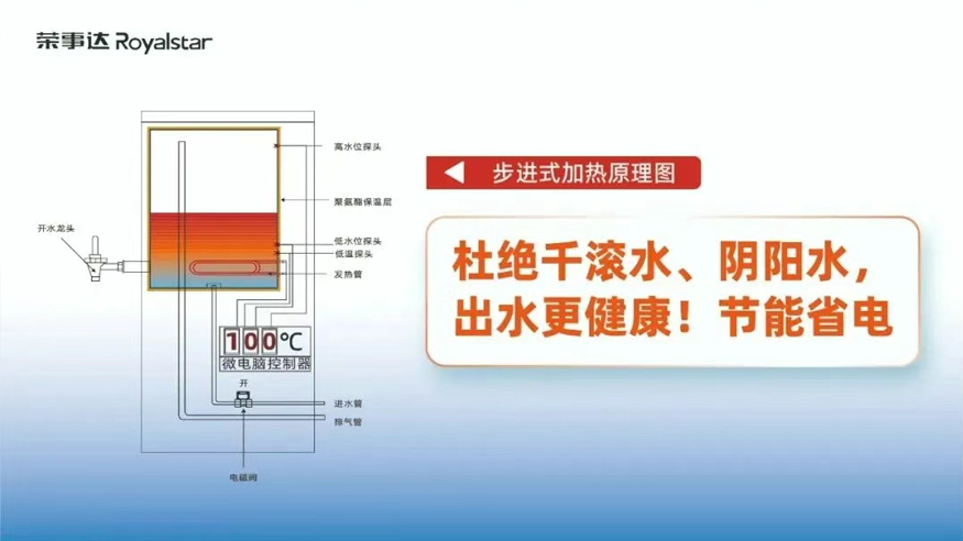 設備采用了多級過濾與RO反滲透技術,能夠有效濾除水中的泥沙、鐵銹、重金屬、余氯等有害物質,確保水質干凈、安全,出水達到直飲標準。同時,步進式加熱設計避免了“陰陽水”的產生,保證了連續供應開水的品質。