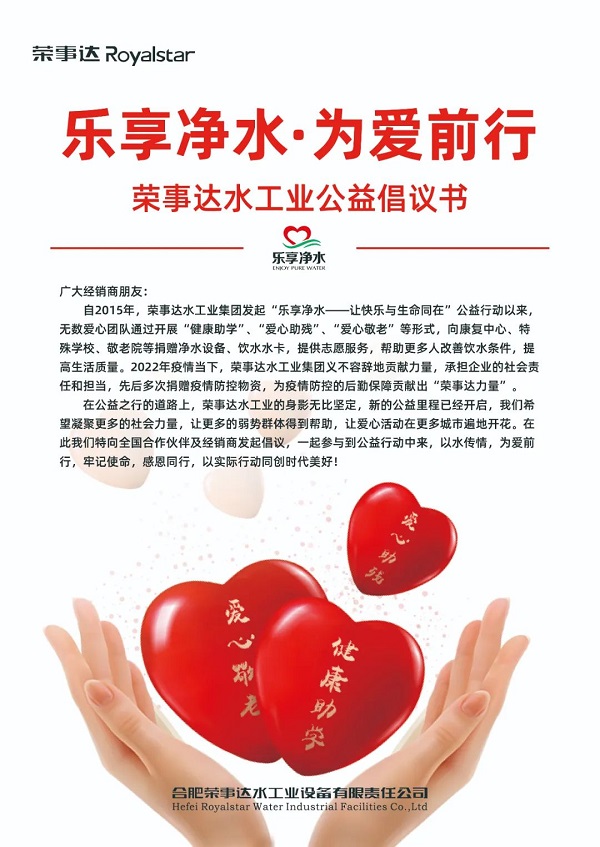 03 榮事達水工業(yè)經(jīng)銷商積極響應集團公益倡議,熱衷于健康助學、愛心敬老、愛心助殘、疫情防控等多種形式的公益行動,截止到目前,經(jīng)銷商們的公益活動已遍及安徽、南京、湖南、江蘇、陜西、江西、河南、河北等多個地區(qū),以健康好水,溫暖每一個城市。
