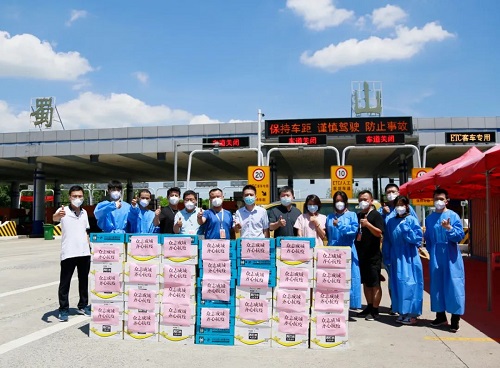 8月6日上午,團市委書記馬進偉、合肥市青年志愿者協會相關領導、榮事達水工業集團董事長雷鳴一行人來到蜀山高速道口看望正在辛苦奮戰在一線的青年志愿者們,為他們帶來了蘇打水、淡鹽水等飲品。