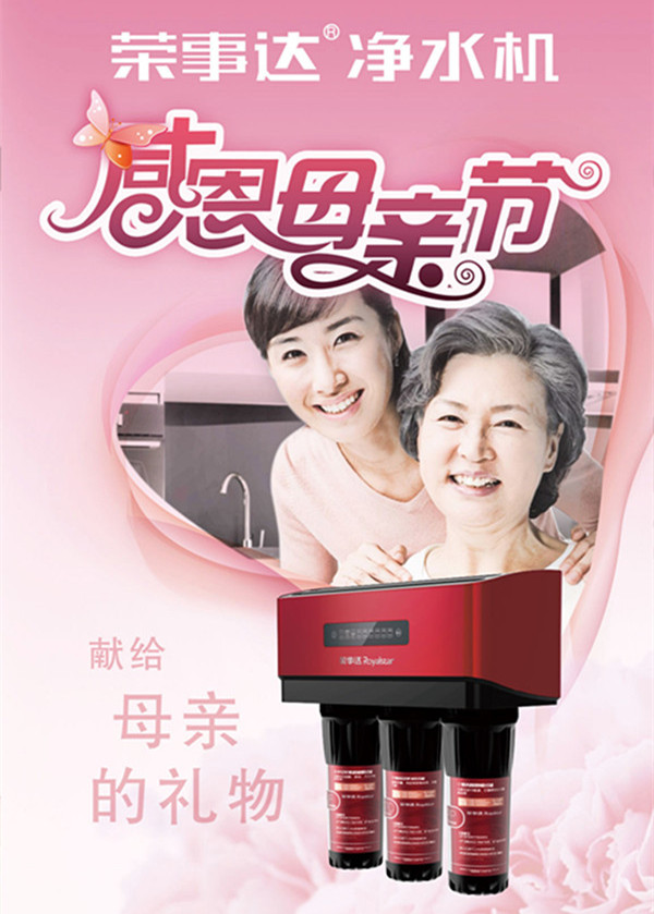 時光流逝,歲月催老,家人的健康是每個子女的心愿。這個母親節,為親愛的媽媽送上一臺優質貼心的凈水機吧,在傳遞濃濃情意的同時,為她們締造理想、舒心的飲用水生活!